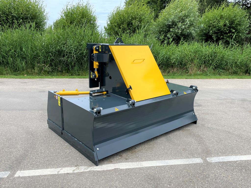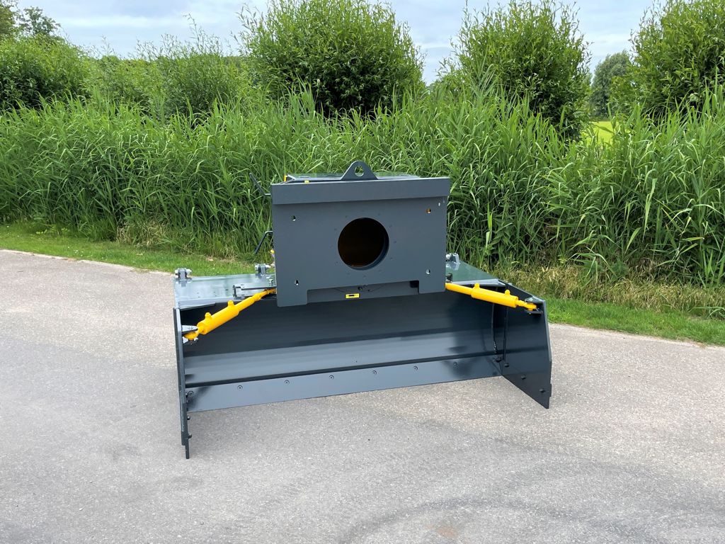 This version features a round dozer blade which is used for moving and spreading heaps of sand and soil. The leveller is also equipped with hydraulic doors and a manually adjustable bottom plate. When the Hardox blades on the sides wear down, the bottom plate can be adjusted. This leads to a much larger lifespan of the hardox blades before they need replacing.