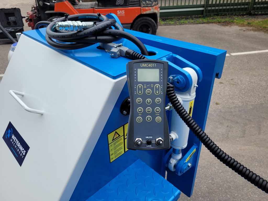 The quick-change system turns your wheel loader in a snap into a perfectly working grader. The leveller is controlled by an MCS (Sitech) proportional laser control system, which is specifically designed for Weterings levellers. This fully automatic levelling systeem provides a very high accuracy.