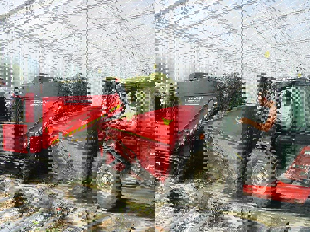 This liquid-tight hydraulic tipping container is often used for waste transport during crop rotation in greenhouses. Shredded horticultural crop and leaf waste can be efficiently driven out of the greenhouse in large volumes.