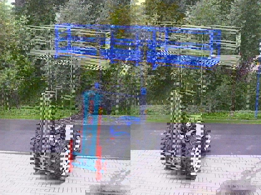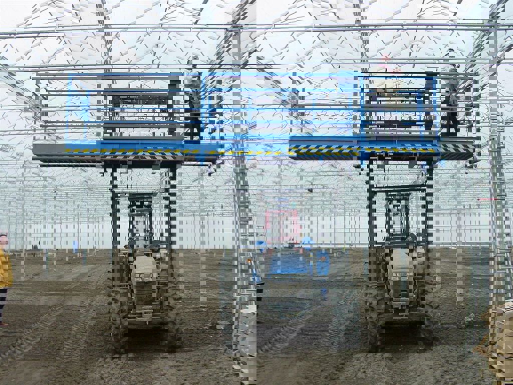 The New Holland TN75D telescope lift, or also called construction tractor, is an ideal compact machine for the construction of screen installations or the construction of steel structures of horticulture greenhouses.