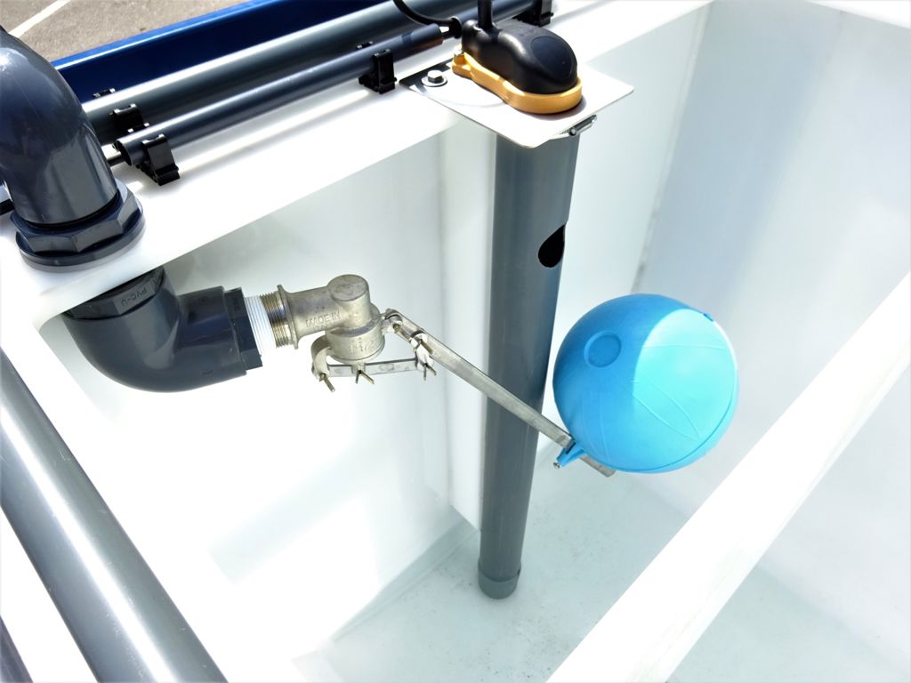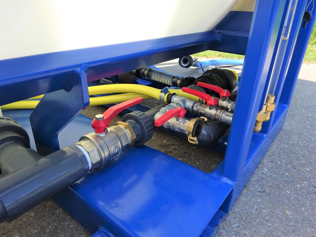 This chalk tank is suitable for automatically mixing of various chalk, coatings and detergents for the coating, chalking and cleaning of greenhouses. The HDPE tank has a storagetank of 1250 liters, and a buffer tank of 200 liters on which the pump unit can be connected. The tank is equipped with a steel frame. Both compartments are provided with an external level indicator. the storage tank also has an internal volume indicator. the clean water storage tank is filled by a ball float valve. This unit is optionally equipped with an automatic mixing unit.
