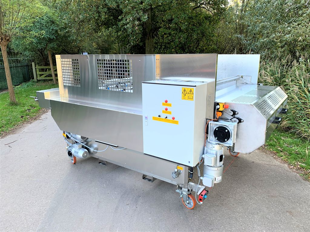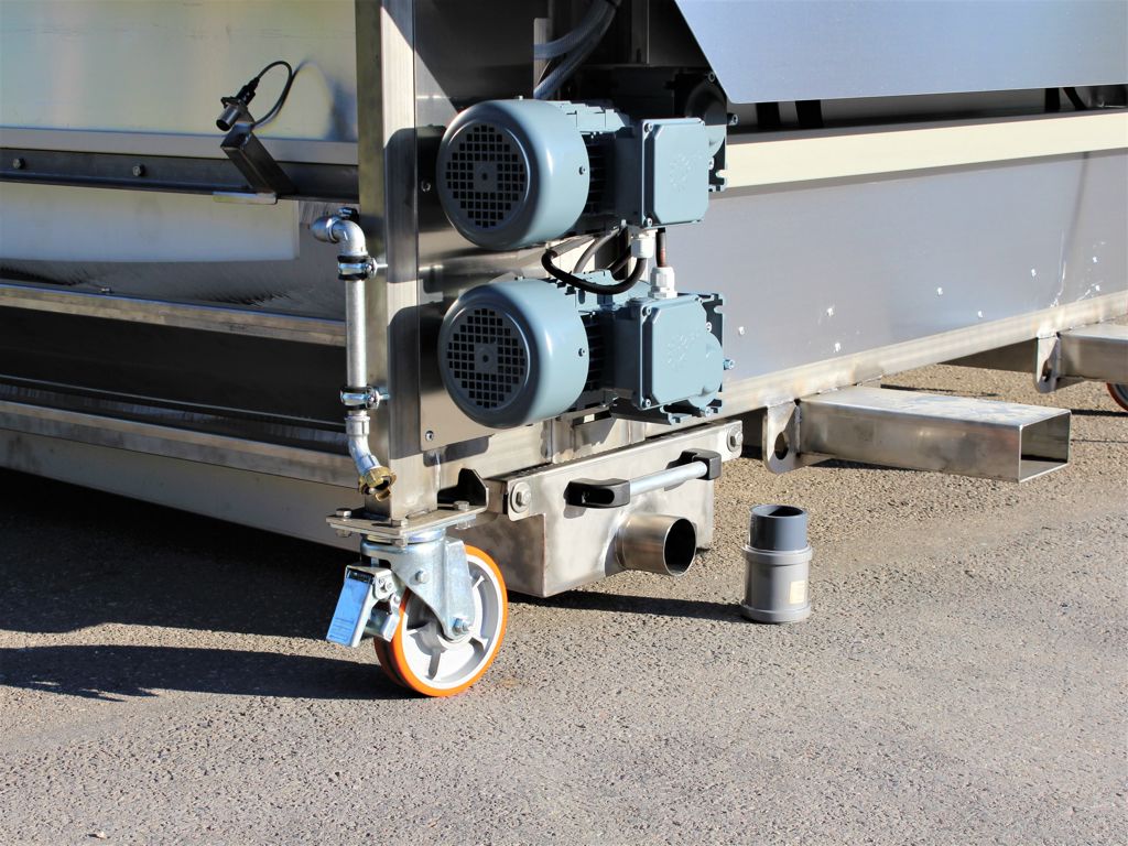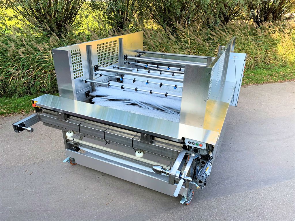 Deze doekwasreinigings-installatie zorgt voor een grondige reiniging van looftrekdoeken. Grond, blad, plantresten en hardnekkig vuil worden middels borstels, schrapers en sproeiers uit het doek gewassen. Het preventief reinigen van transportmatten verlaagd tevens het risico op eventuele virusoverdracht via de transportmatten binnen met name de groentekwekerijen en veredelingsbedrijven. Deze doekwasreiniger is uitgerust met extra wielen waardoor deze makkelijk verrijdbaar is.