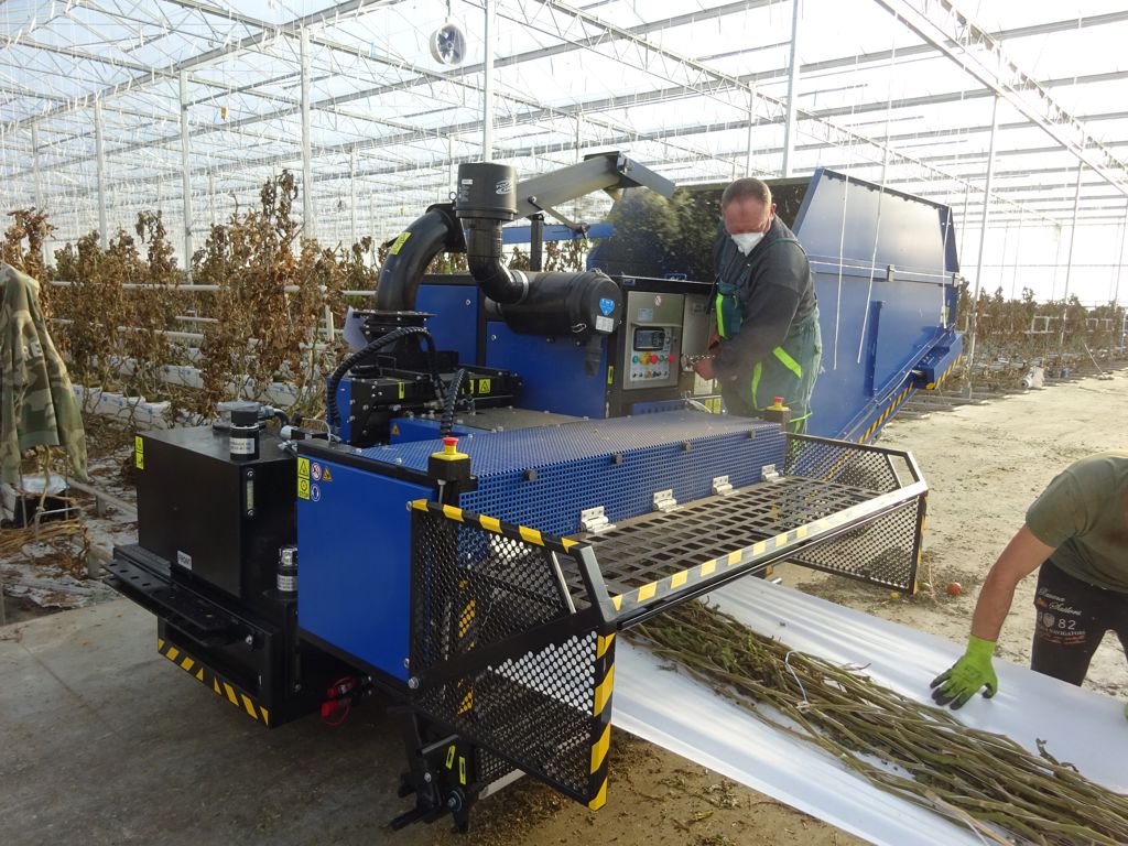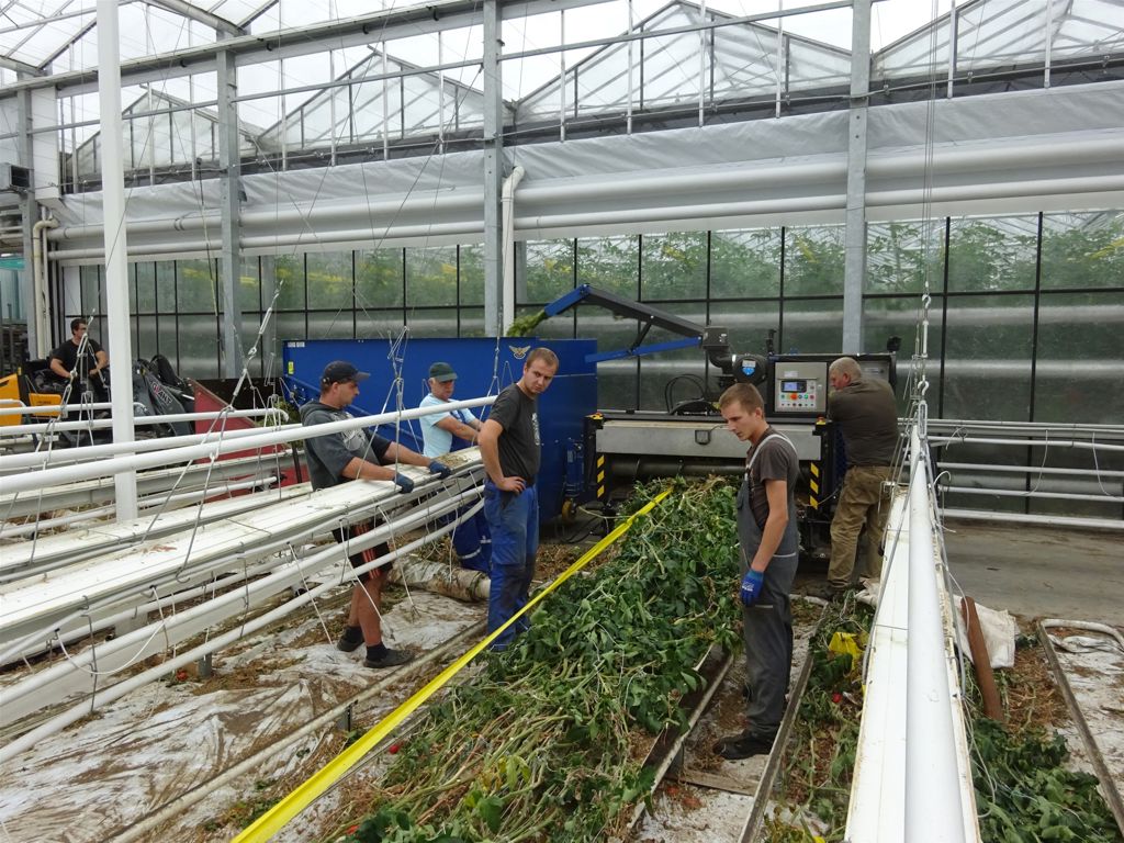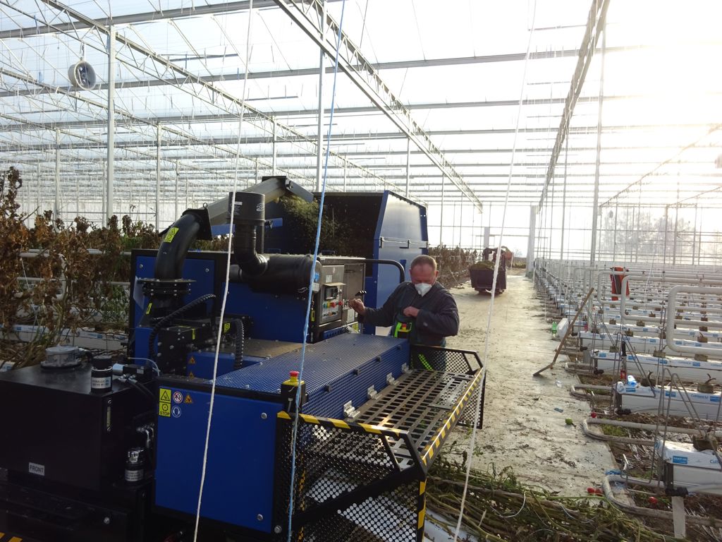 teeltwisseling, buffer, logistieke buffer, gewas versnipperen, hakselen, bio chopper, komkommer planten, kas leegruimen, uitruimen kas, tuinbouw teelt wisselen, buffer container, logistieke buffer
