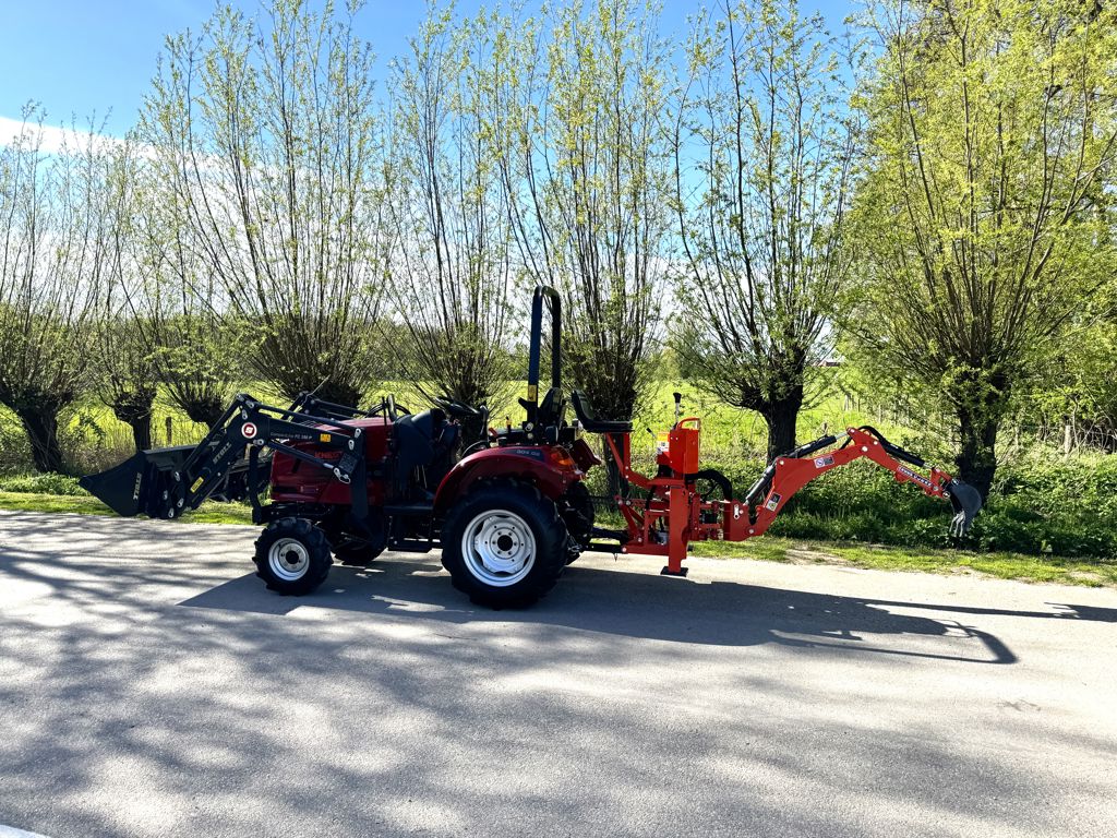 Deze compacte Krachtpatser heeft een 30 pk sterke motor en is standaard uitrusting: stuurbekrachtiging, 4x4, lage gearing, hydrauliek, dubbele koppeling, inklapbare rolbeugel en werkverlichting.