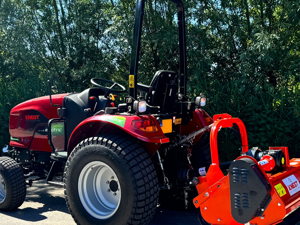 De tractor kan met een kleine draaicirkel van 2.3 meter en vierwielaandrijving ook op de kleinere rijbakken goed uit de voeten. Ondanks zijn korte wielbasis kan deze Knegt tractor achter op de kogel 700 KG heffen.
