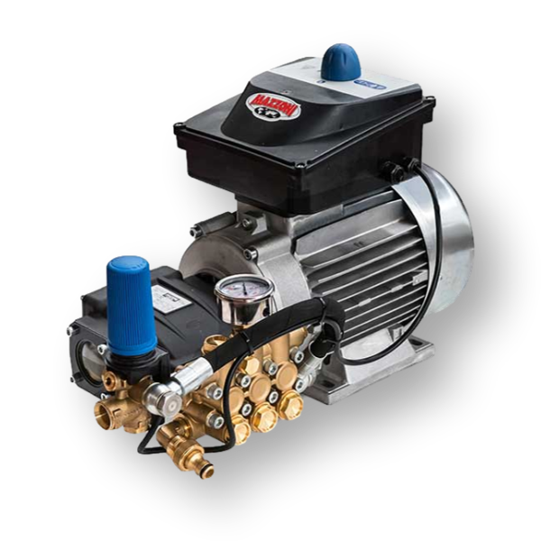 Deze complete Mazzoni PM10 pompset is uitgevoerd met 3 hogedruk zuigers en een messing kop. Deze pomp staat bekend om zijn hoge prestaties en betrouwbaarheid.