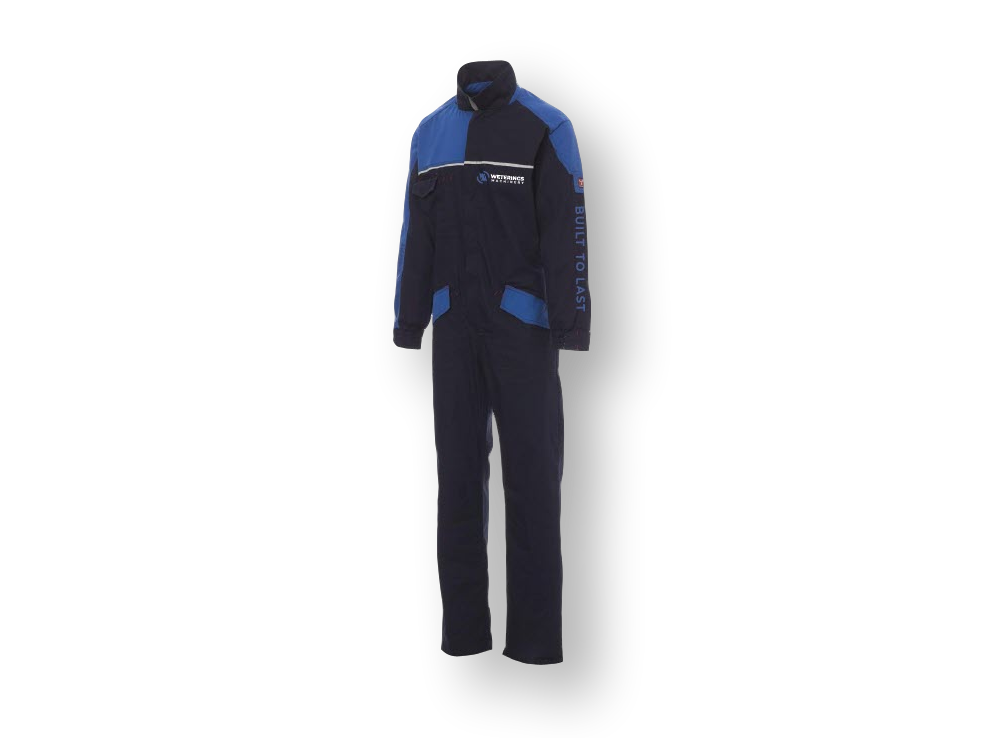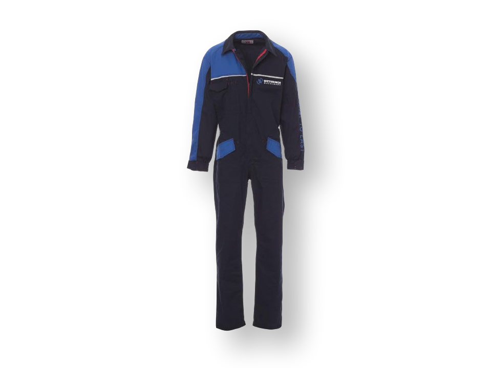 Overall in twee kleuren, voorsluiting met rits, elastische manchetten en sluiting van manchetten met knoop, twee zakken voor met het LOCK SYSTEM met verstevigde onderkant, een ruime multifunctionele borstzak, zak voor smartphone en uitvouwbare badgehouder, twee zakken achter, een met klep en een met twee reflecterende strepen, reflecterend pipingband op de borst en rug, elastische, geplooide rug voor meer bewegingsvrijheid.xx