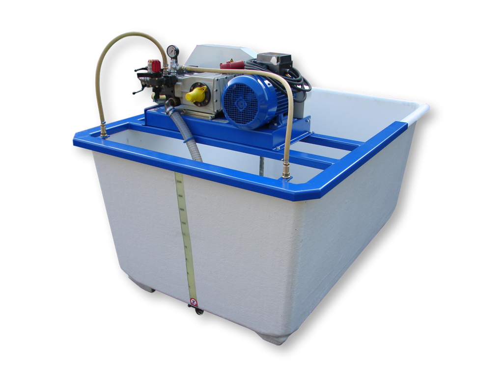 Deze vaste pompinstallatie is uitgerust met een P123 plunjer pomp. De pomp is zeer geschikt voor het verpompen van gewasbeschermingmiddelen. Daarnaast is de plunjerpomp ook geschikt voor het verpompen van sloot- en oppervlaktewater. De 7,5kW/400V pompmotor is uitgevoerd met een sterdriehoek schakelaar. De pomp wordt aangedreven middels een muisstille v-snaar overbrenging. De P123 is een 3 cilinder plunjerpomp voorzien van keramische plunjers en RVS kleppen en zittingen. De tank is uitgerust met een aftapkraan zodat deze gemakkelijk leeg gemaakt kan worden om bijv. schoon te maken. De inhoud van de kuip is 2200 Liter, uiteraard zijn er ook andere kuipmaten beschikbaar.
