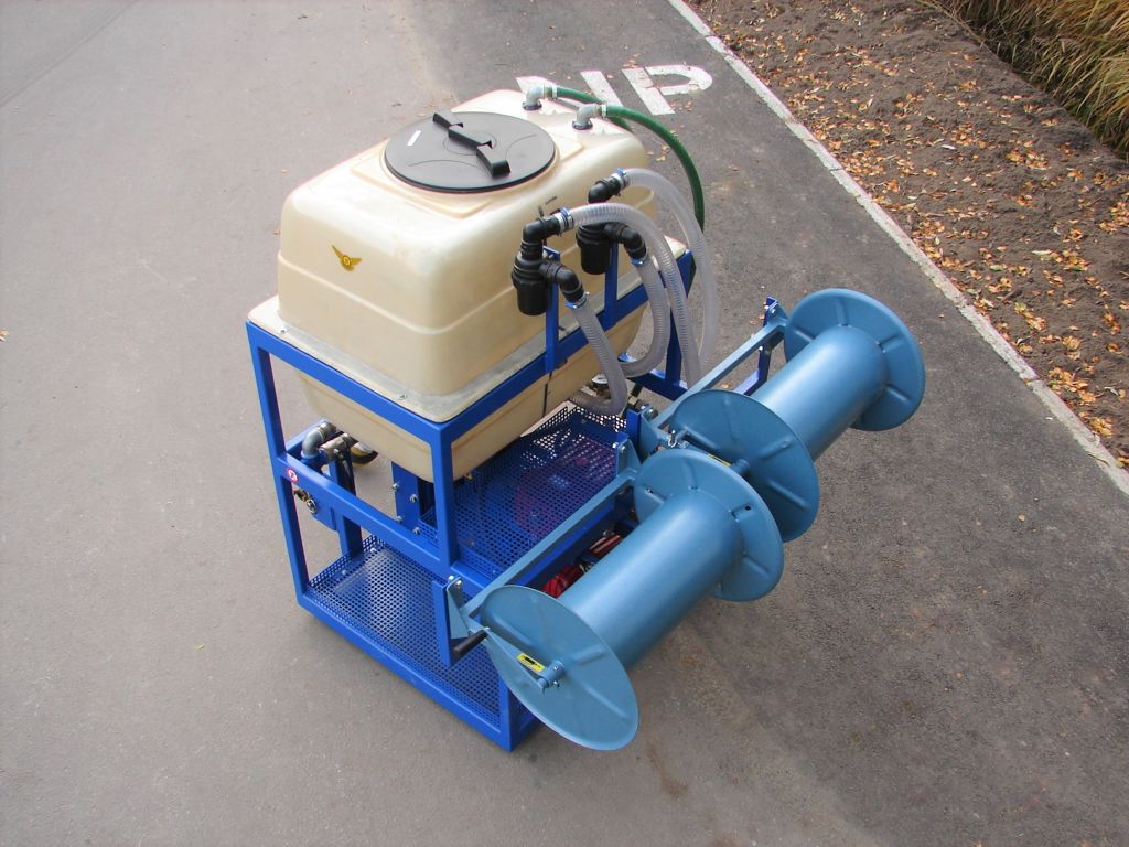 Deze aftakas aangedreven pompunit wordt gebruikt voor het reinigen van kasdekken. De hoge druk (180 bar) zorgt voor en grondige reiniging van de roeden en het glas in het kasdek zonder gebruik van chemicaliën. In diverse vollegrond teelten zoals chrysanten is het gebruik van reinigingsmiddelen ongewenst. Dit model is voorzien van een gesloten 400 liter tank en twee handhaspels. Naast reinigingswerkzaamheden kan deze pompunit ook ingezet worden voor het spuiten van gewasbeschermingsmiddelen.