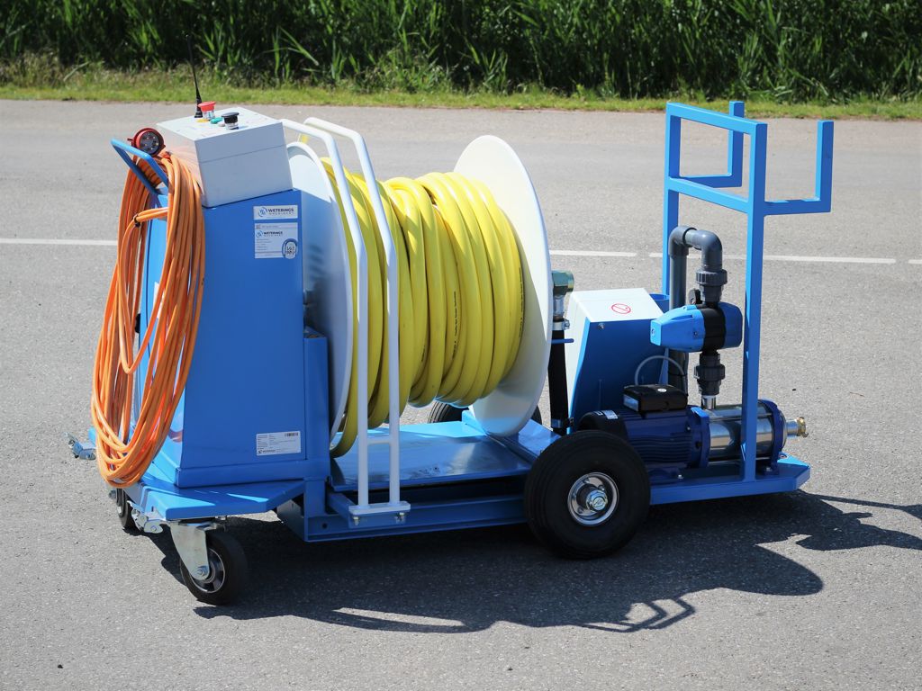 De Weri Compact Roller (WCR) is een elektrisch haspel met opvoerpomp om meer druk en liters water dan normaal te kunnen geven.